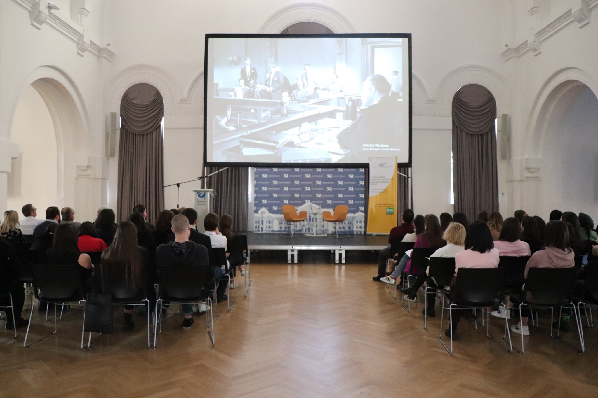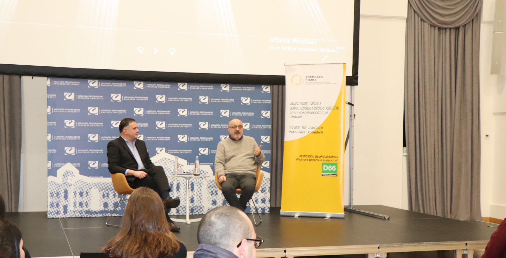 Over 60 students gathered in the main auditorium of the Caucasus University for the screening of Sidney Lumet’s 1957 classic “12 Angry Men” – a movie considered a must-see for future lawyers and civic activists. The event was organized under the aegis of the project “Youth for Justice with Zaza Bibilashvili”.