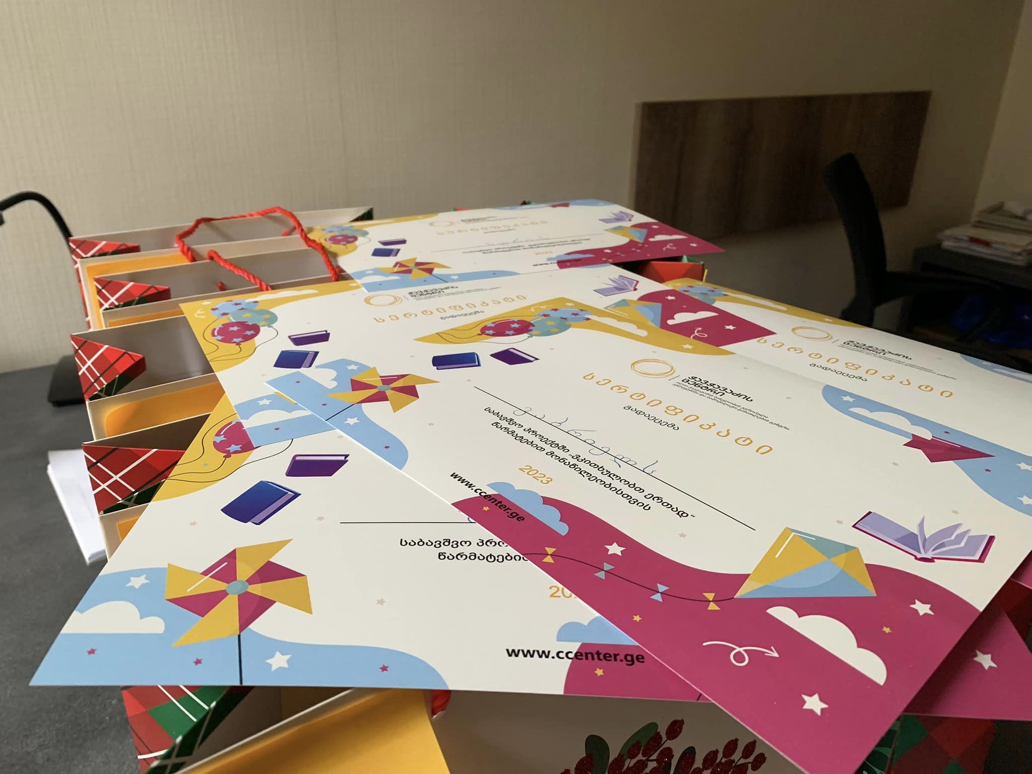 ბოლო ოცი წუთი დაჯილდოების ცერემონიალს დავუთმეთ, პატარა მსმენელებს სერტიფიკატები გადაეცათ, რაც იმას ნიშნავს რომ დღეიდან ისინი უბრალო კი არა, სერტიფიცირებული მკითხველები არიან. წიგნებიც ვაჩუქეთ "თან საკითხავის" სერიიდან - ილიაზე, ვაჟაზე, აკაკიზე, ნიკოლოზ ბარათაშვილზე, გალაკტიონზე და არამხოლოდ მათზე - პლუტარქეზეც, ძველ რომზეც და თქვენ წარმოიდგინეთ, კობი ბრაიანტზეც.
