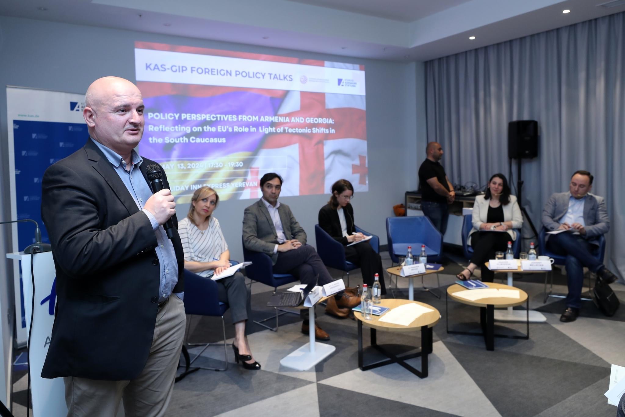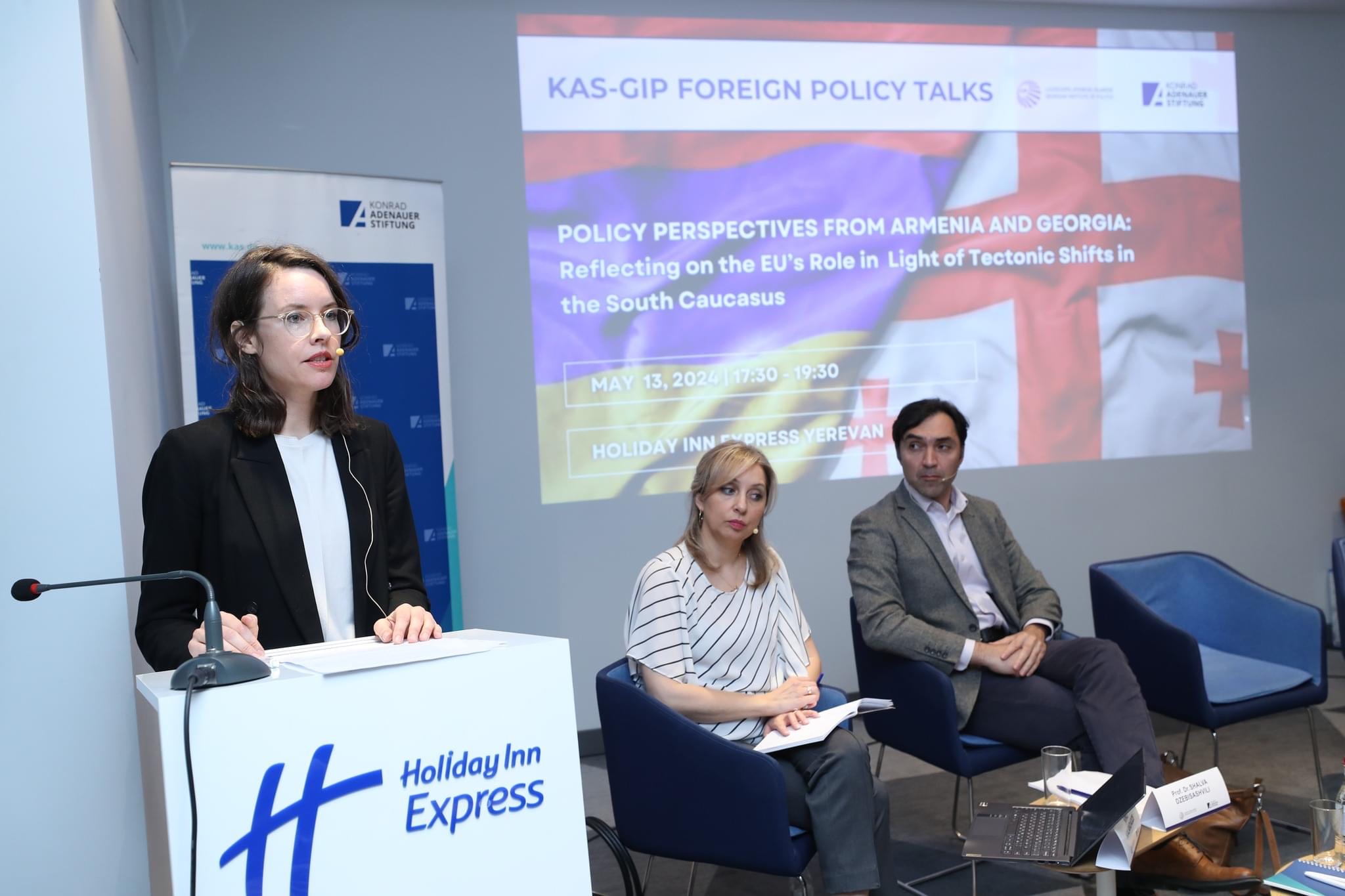 სესიას უხელმძღვანელა შტეფან მალერიუსმა - კონრად-ადენაუერის ფონდის სამხრეთ კავკასიის ბიუროს ხელმძღვანელმა. შესავალი სიტყვა  საქართველოს პოლიტიკის ინსტიტუტის დირექტორმა, პროფ. კორნელი კაკაჩია წარმოთქვა. აგრეთვე, სიტყვით გამოვიდა სომხეთში ევროკავშირის წარმომადგენლობის ხელმძღვანელის მოადგილე, იან პლესინგერი. პანელურ დისკუსიაში, აგრეთვე, მონაწილეობდნენ:  საქართველოს უნივერსიტეტის პოლიტიკისა და საერთაშორისო ურთიერთობების დეპარტამენტის პროგრამების ხელმძღვანელი, პროფესორი შალვა ძებისაშვილი, სომხური კვლევითი ცენტრის APRI-ის  ვიცე-პრეზიდენტი სტრატეგიული განვითარებისა და პოლიტიკის საკითხებში ანაჰიდე პილიბოსიანი, და ორბელის ანალიტიკური ცენტრის უფროსი მკვლევარი ჯონი მელიქიანი.