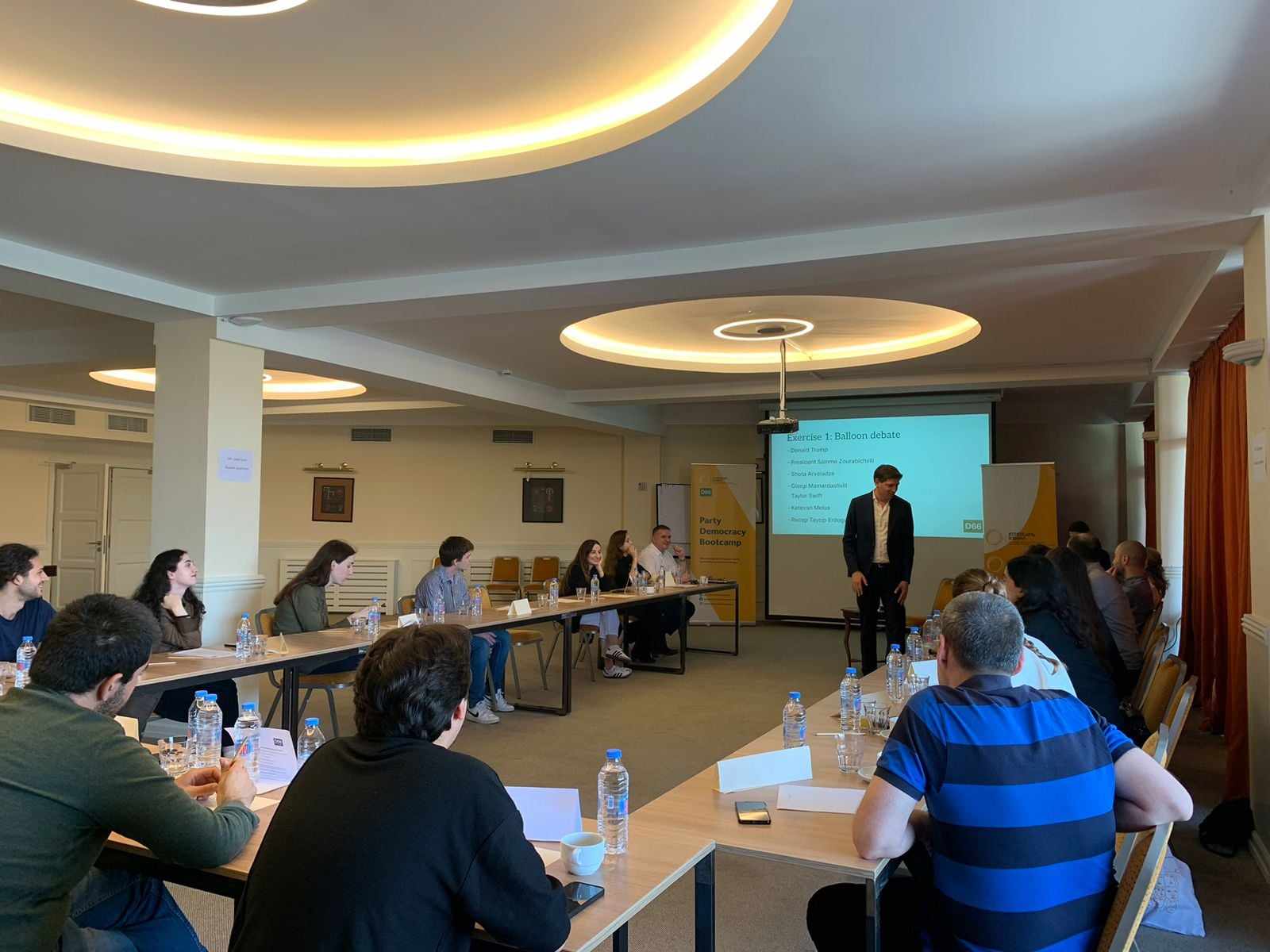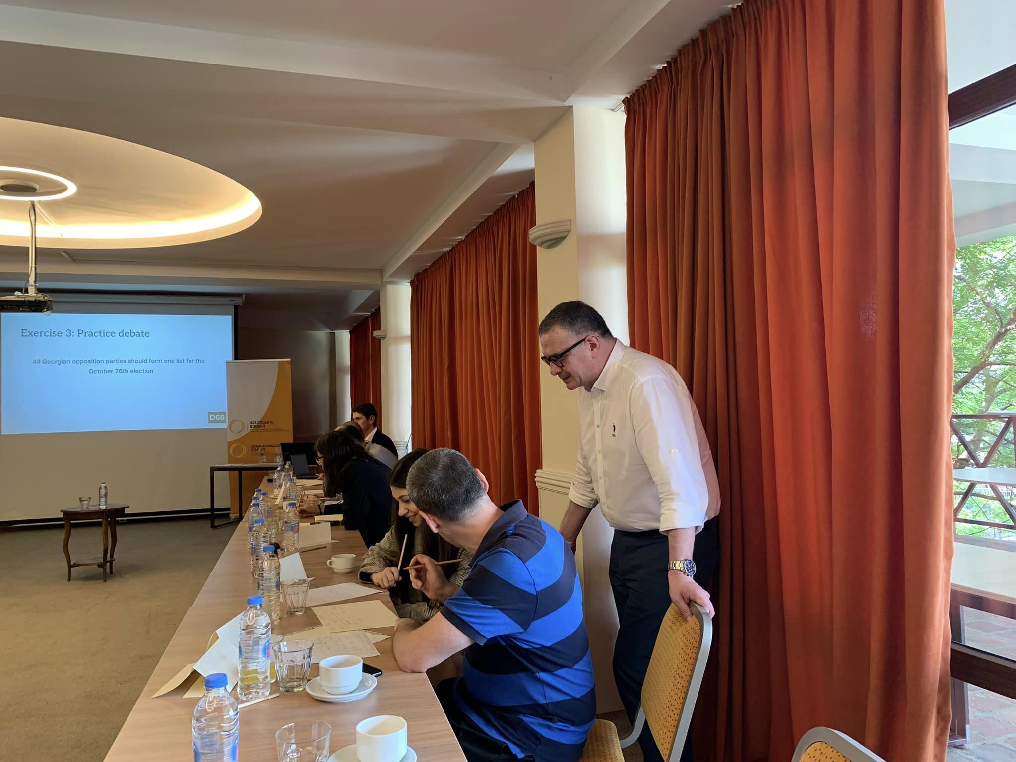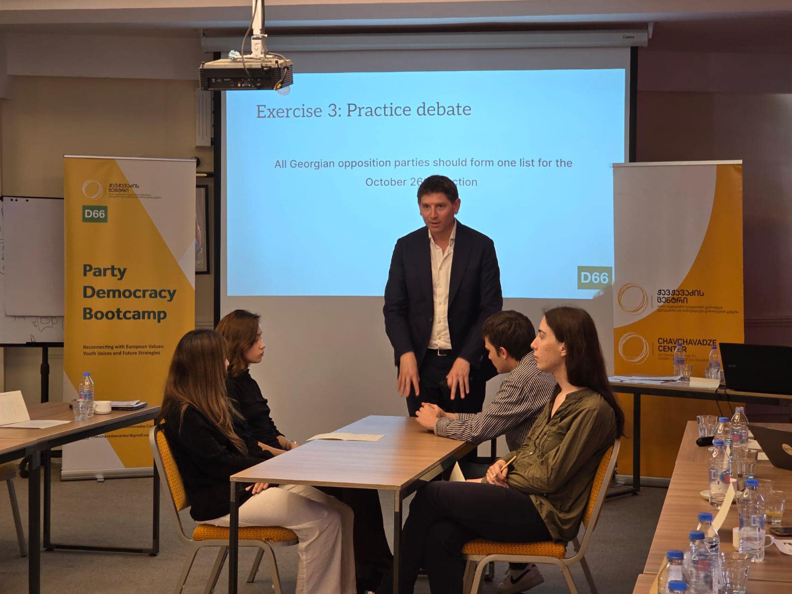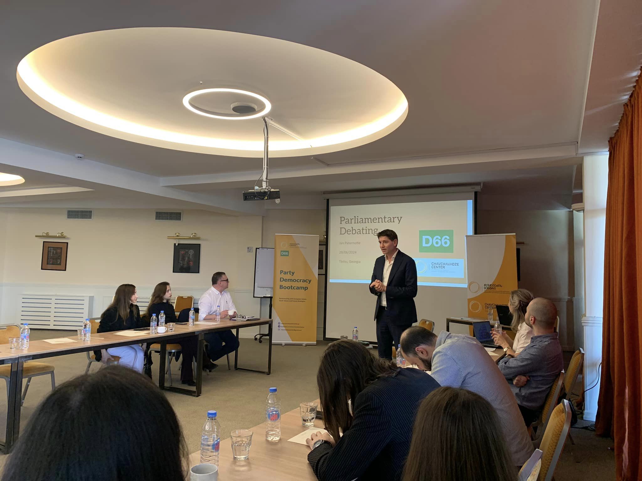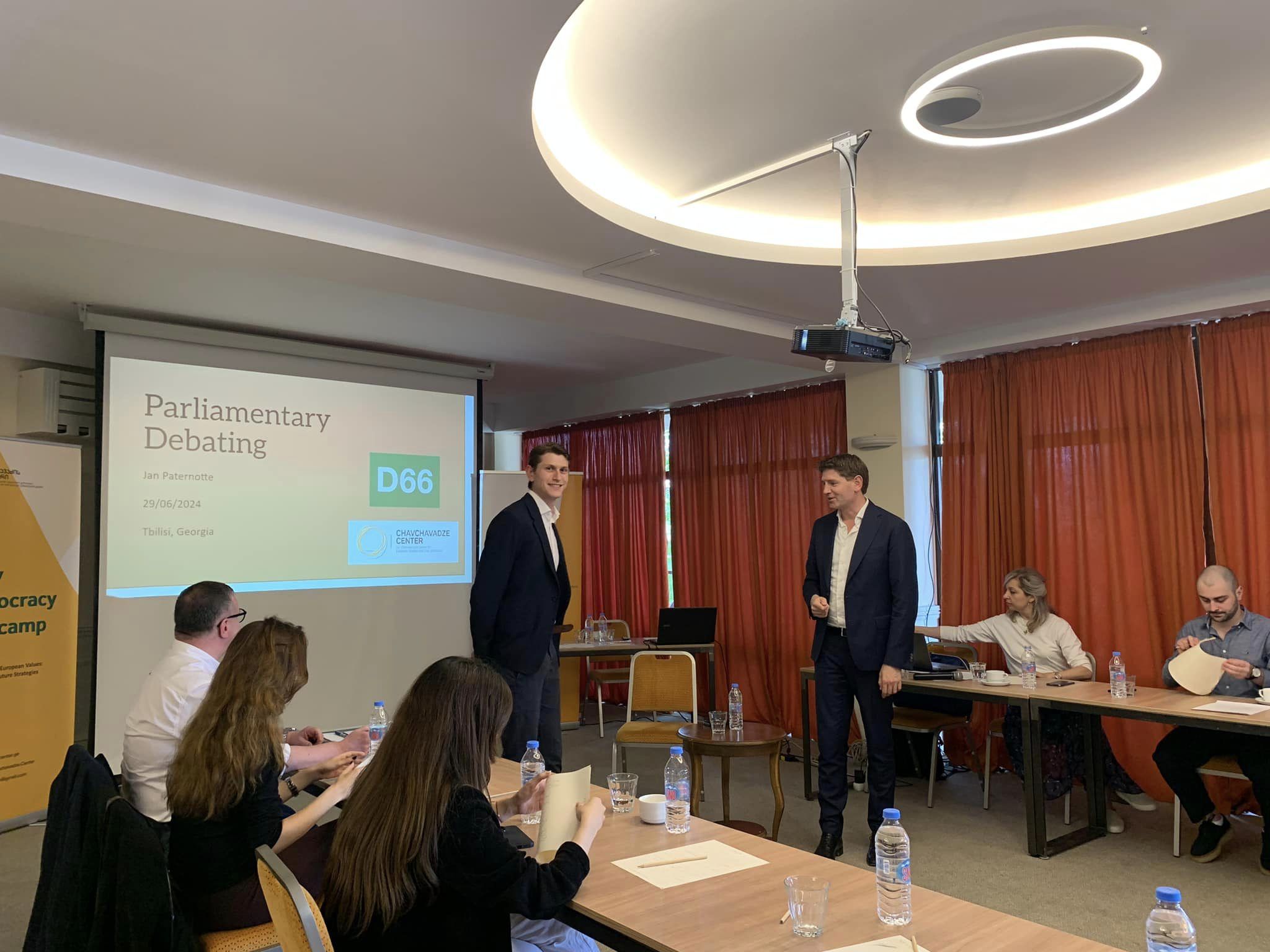დღის ბოლო სესიას წარუძღვა ნიდერლანდებიდან სპეციალურად ამ დღისთვის ჩამოსული სტუმარი, ჰოლანდიის პარლამენტის წევრი, იან პატერნოტე. მან ისაუბრა დებატებისა და მოლაპარაკებების ხელოვნებაზე და კოალიციური მთავრობების ფორმირების კულტურაზე ნიდერლანდებში. დღის ბოლოს გაიმართა ბრიტანული საპარლამენტო სტილის დებატები.